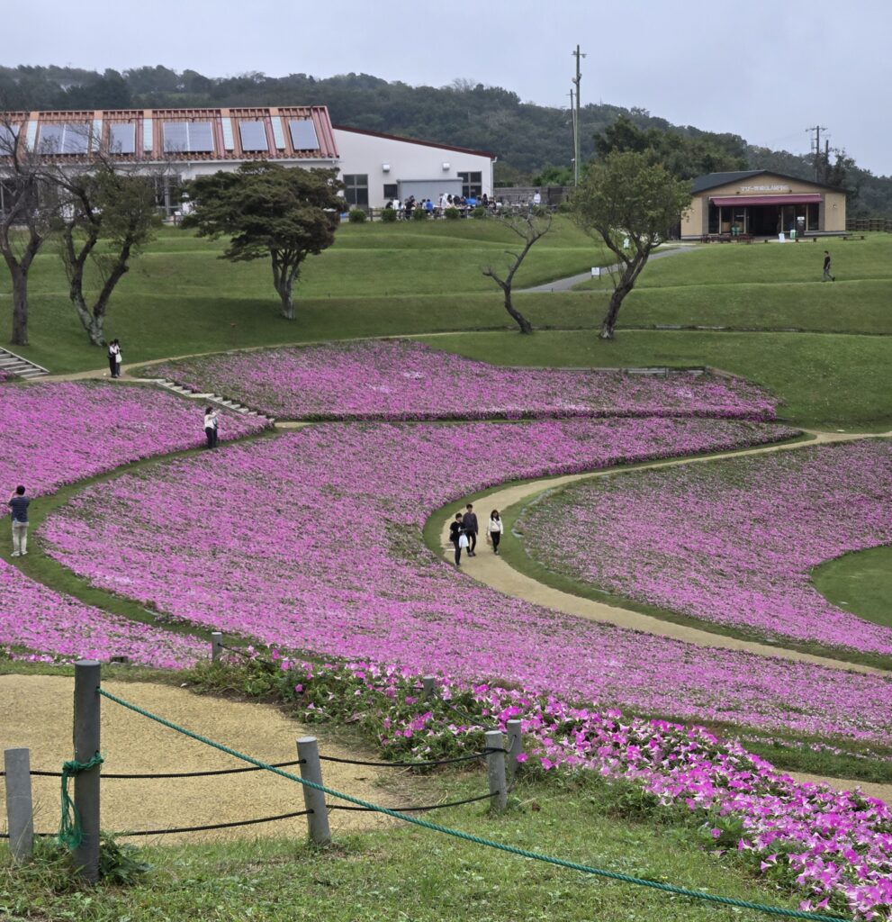 訪れた日は、まきばエリアにある約8000株のコキアの紅葉と約20,000株のペチュニアがとても綺麗で、まるで絵画のような景色が広がっていて、わんこ達も楽しそうに鼻をクンクンさせていました。