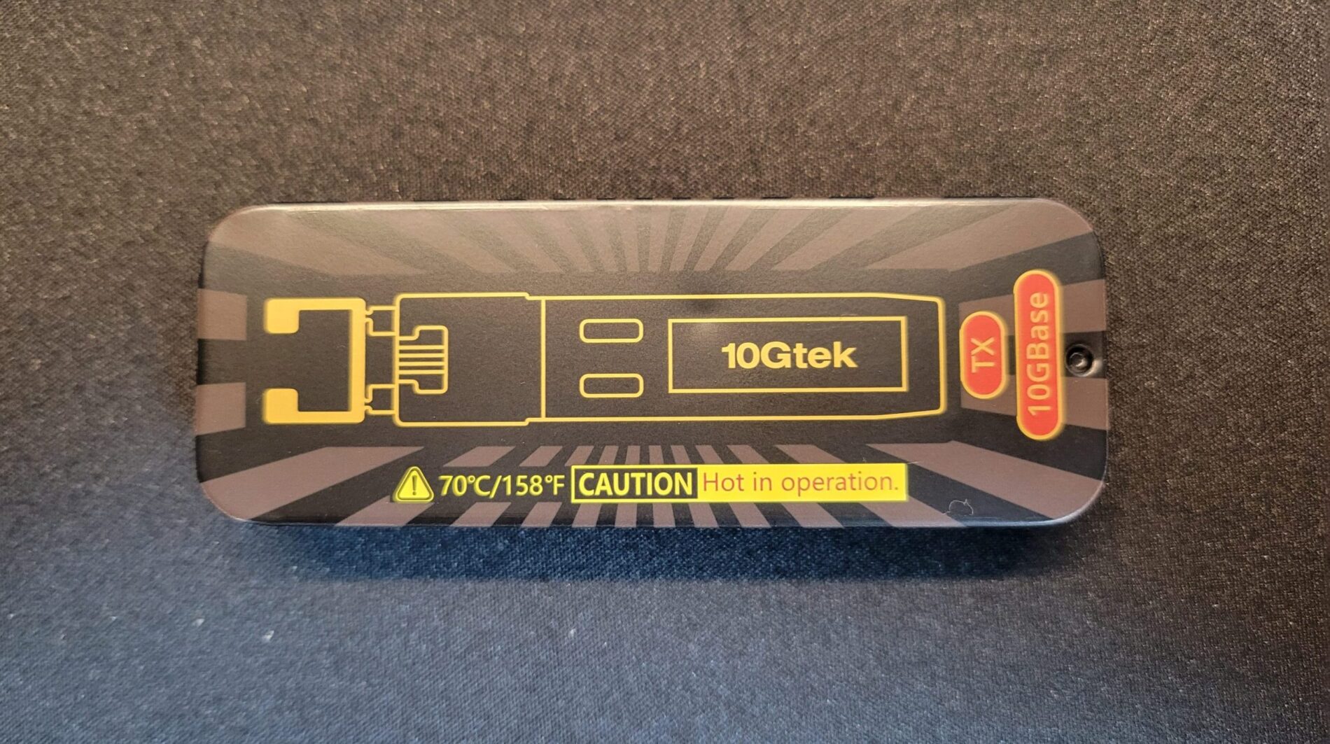 しかしながら、スイッチングハブに使用したSFP+用の変換モジュールがものすごい発熱で、指で触ると危険なレベルです。このモジュールはどうしようもできないので、モジュールにヒートシンクを取り付けるか、モジュールに対して何らかの方法で風を当てて冷ます方法を取るしかなさそうです。使用される方は特に注意してください。私はUSB電源供給のファンとモジュールに小さめのヒートシンクを取り付けて風を当てるようにしています。